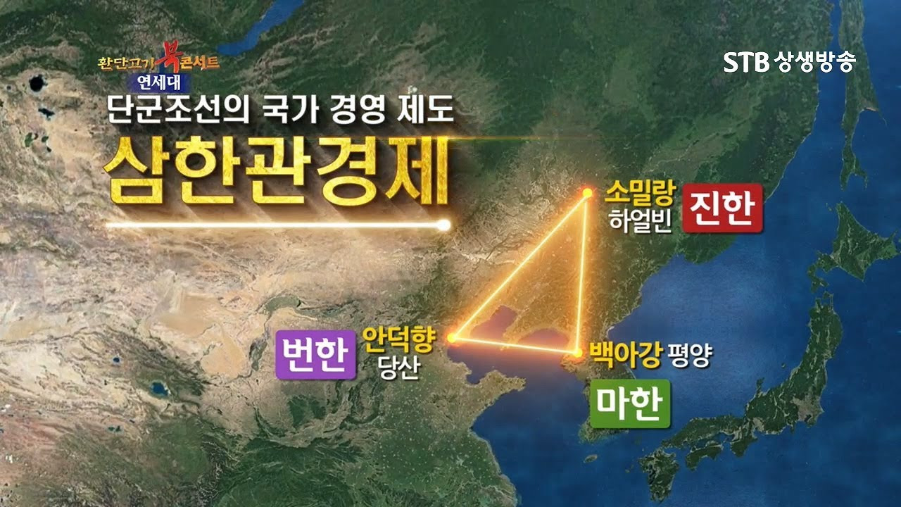 초대 단군왕검은 나라를 삼한, 즉 진한·번한·마한으로 나누어 다스렸는데 이것이 바로 단군조선의 국가 경영 제도인 삼한관경제三韓管境制입니다. 진한의 수도는 아사달(지금의 하얼빈), 번한의 수도는 안덕향(지금의 하북성 당산시), 마한의 수도는 백아강(지금의 평양)이었습니다. 일찍이 구한말의 역사학자 단재 신채호 선생은 삼한관경이 단군조선의 국가 경영 원리였음을 밝혀낸 바 있습니다.