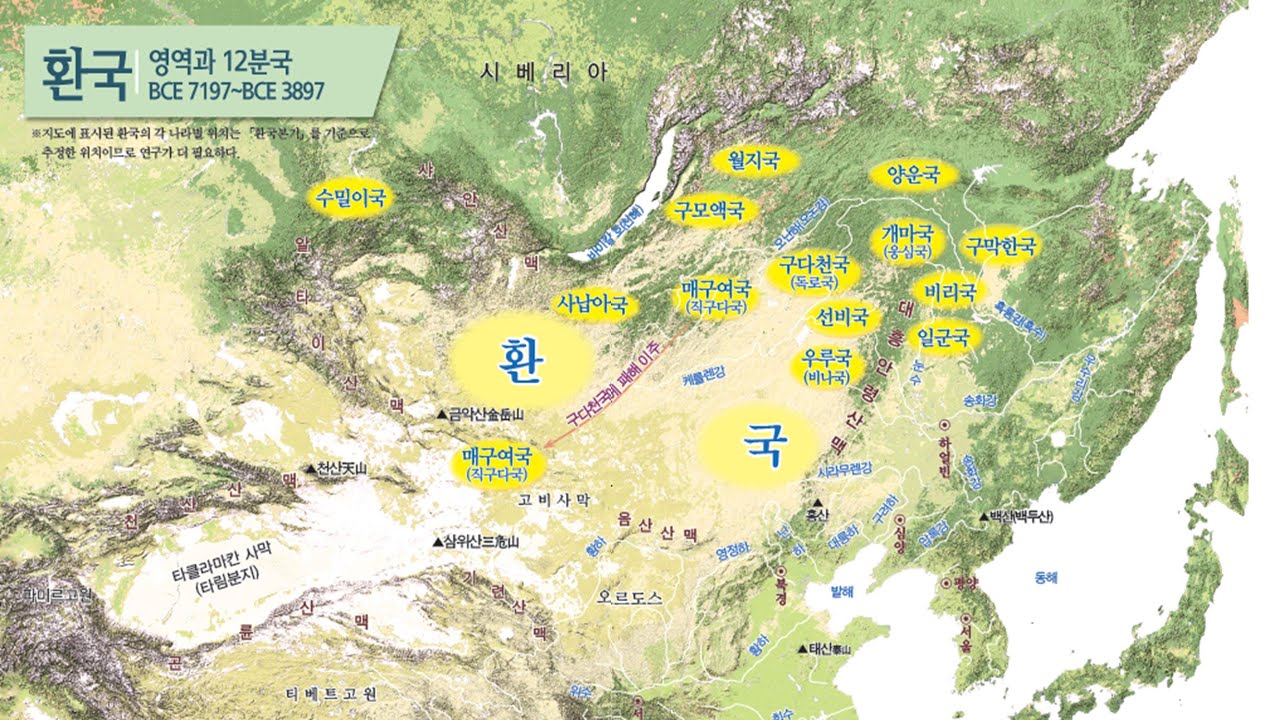 환국은 중앙아시아 천산을 중심으로 펼쳐진 인류사의 뿌리 시대이자 황금시대였습니다. 그런데 환국 말에 중앙아시아가 급속히 건조화되기 시작했습니다. 그 곳에서 살 수 없었던 사람들은 새 터전을 찾아 동서로 흩어졌습니다.