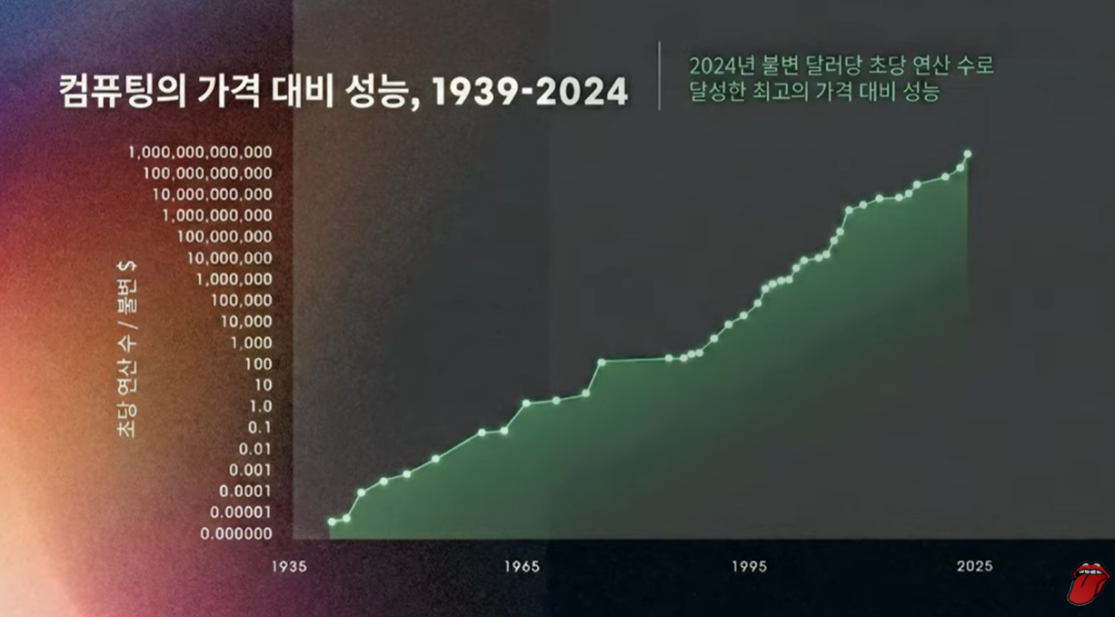 - 폭발 구간: 수직 상승. "이거 미친 거 아니야?" 기겁 (지금의 AI 혁명)
